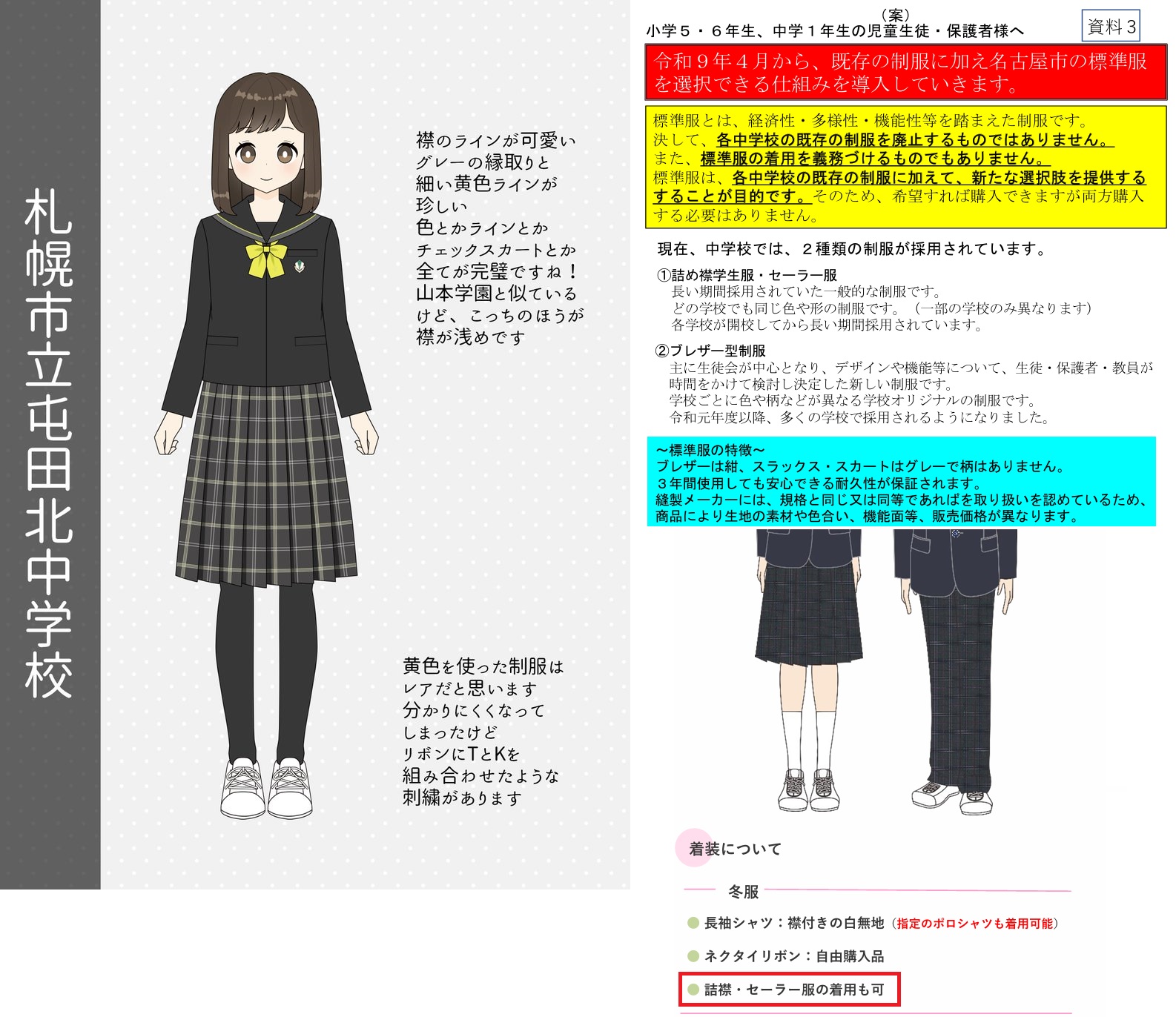札幌市立屯田北中学校の制服写真画像まとめ・レビュー口コミ評判・夏服冬服詳細情報